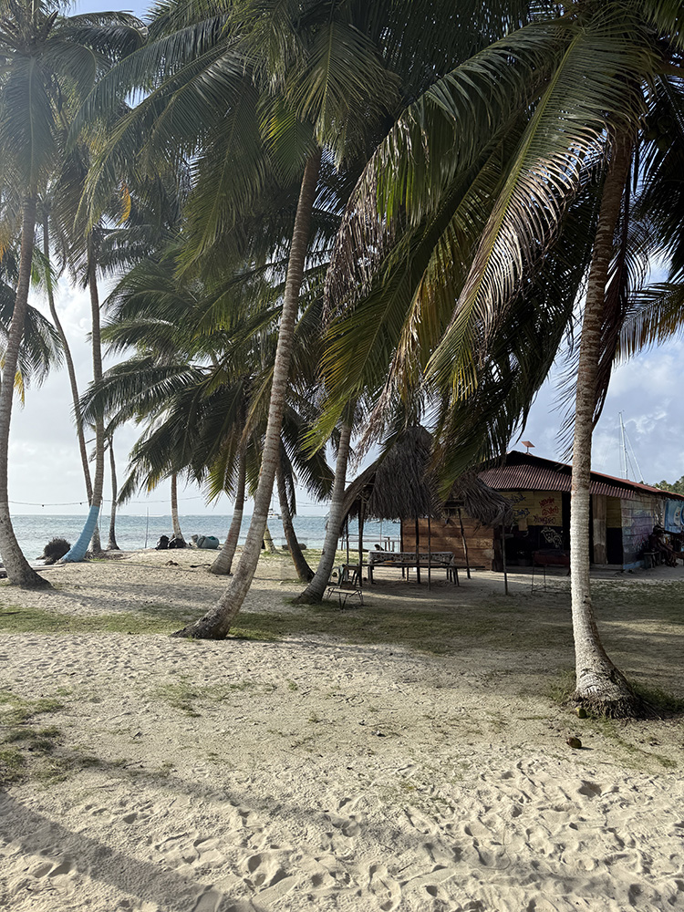At around 0545, the squalls subsided, Galini settled to a comfortable reach and Punta San Blas was about 20nm distant. The sun was breaking across the horizon and we closed that distance with 15kts of breeze. Around 0900, the small islets became visible on the horizon. Since we were tired and had a challenging night, we opted for reaching to one of the .nearest islands, Cayos Chichime. The sea was beautiful, the sun warm, palm trees were visible and inviting. At last, the weather, sun, and promise of adventure permeated our mood, with tired smiles we greeted the new morn.